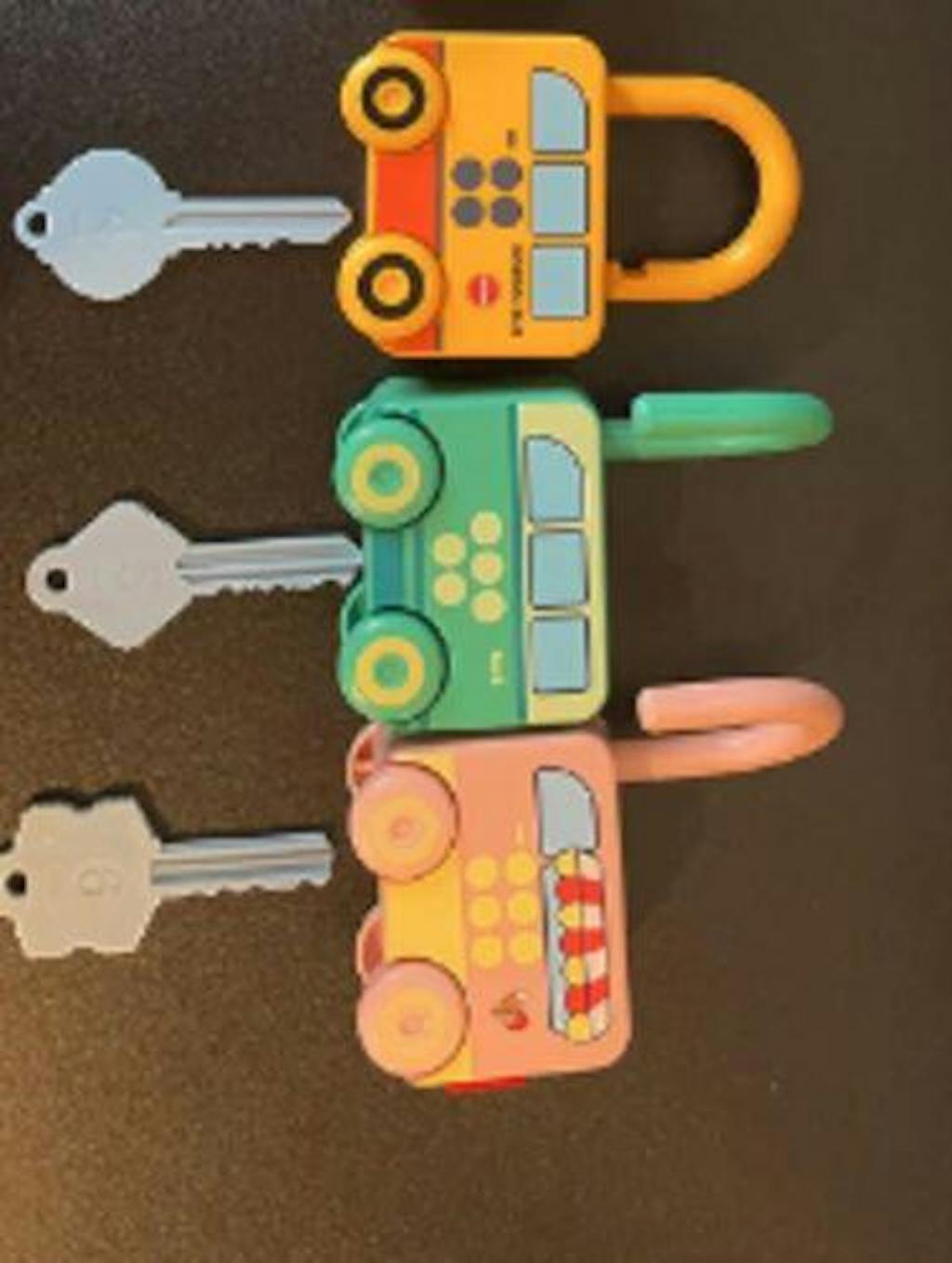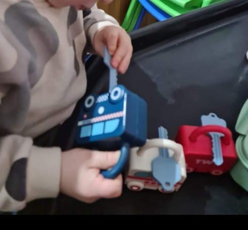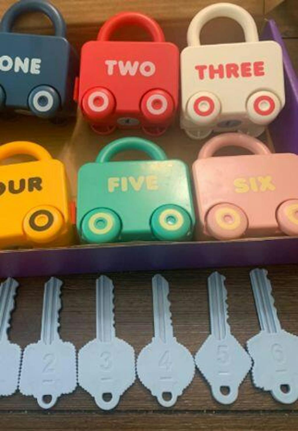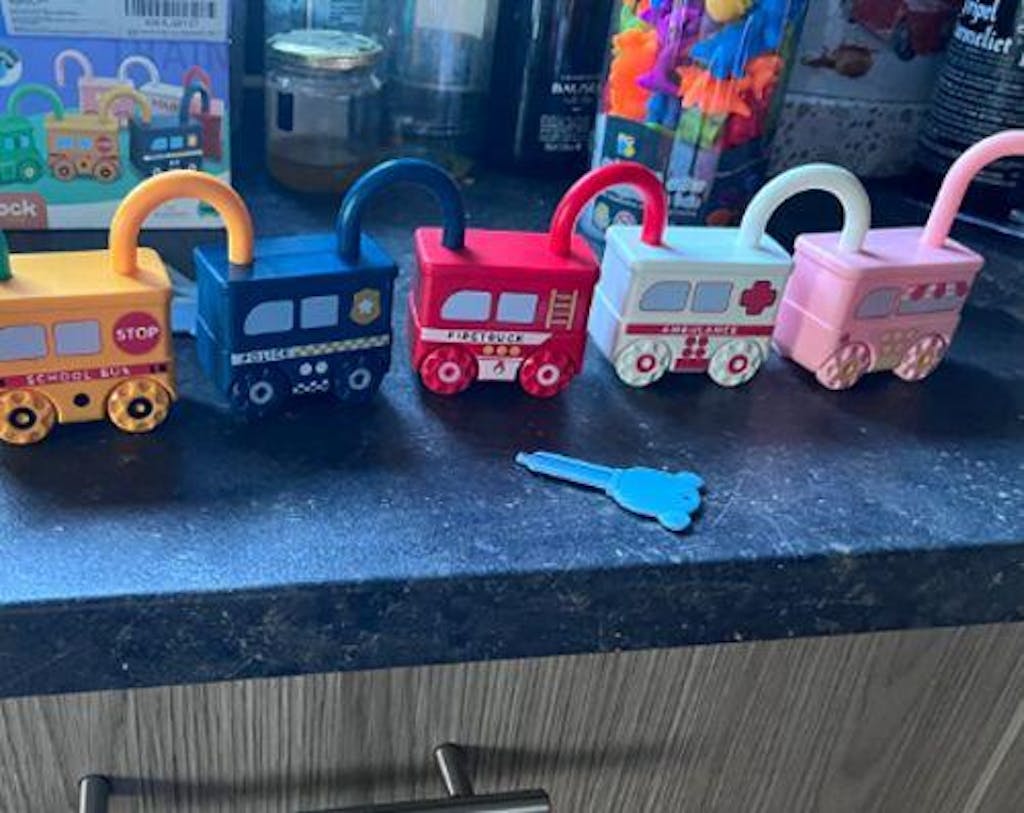 I love activities that are open ended and this one kept my four year old focused and engaged . She loved the key matching and unlocking ,pluse the train carts are able to link together and that was also a hit! Would recommend this for busy hands !