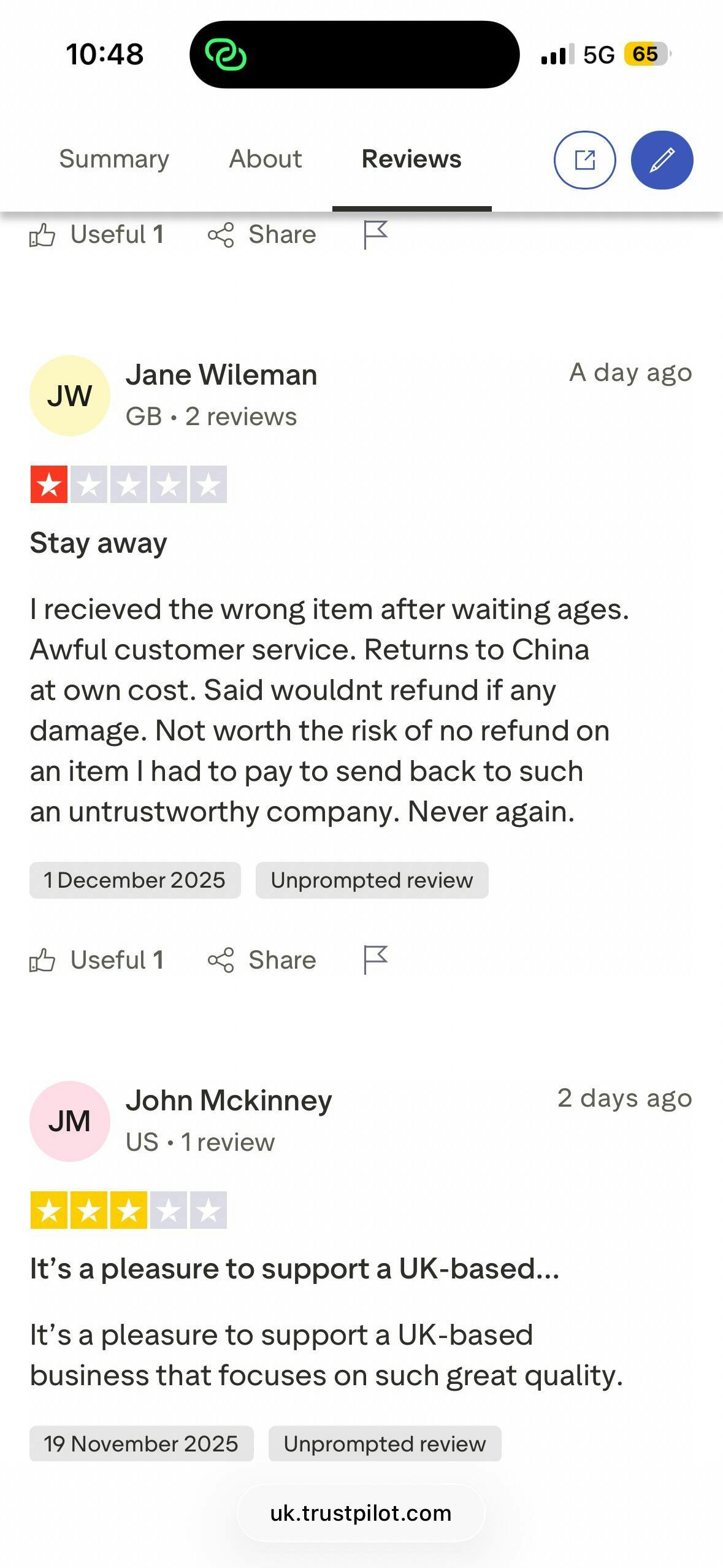 NOT A UK BASED COMPANY. Dropshipping company. Charged to return to China. Products reported as not good quality on trust pilot. They don’t honour their policy. Long delivery times if it does come. Charged to return if item is faulty. Scammers. Continuing to post this until my situation is resolved. Check Trust Pilot