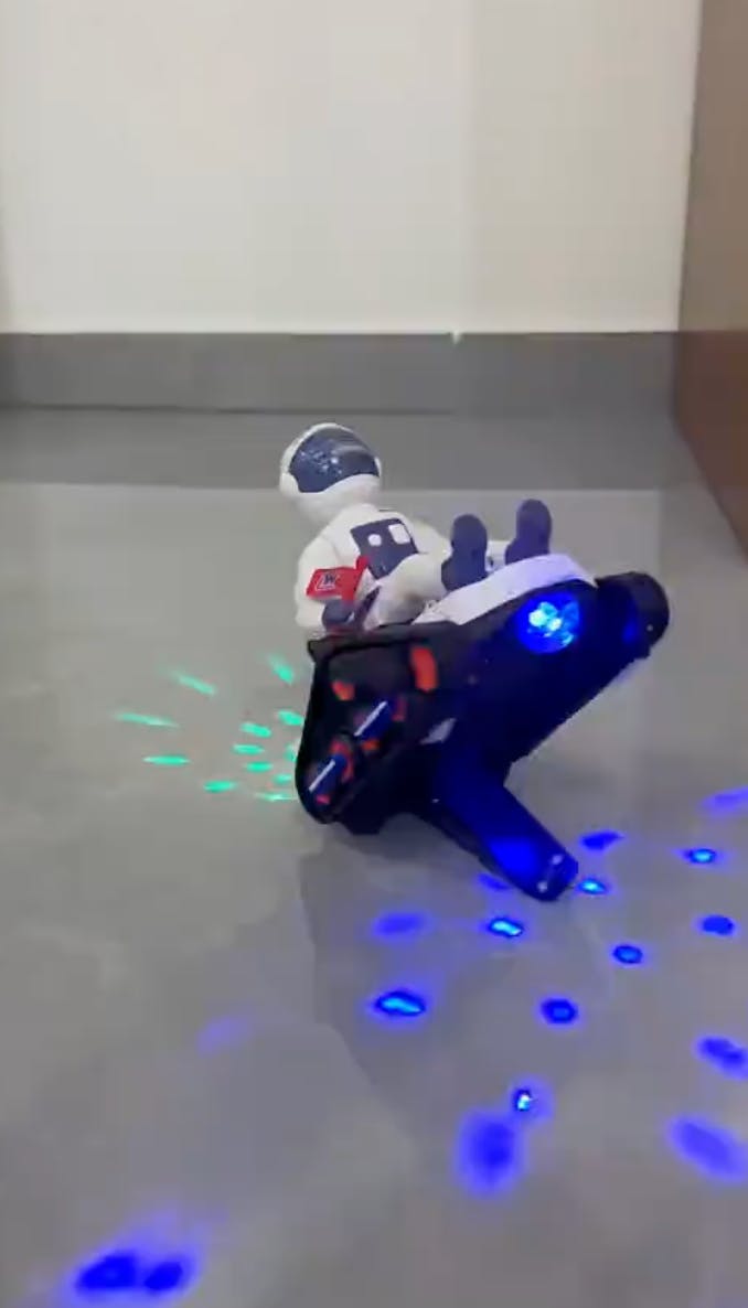 This toy fills playtime with glowing lights and cheerful music, keeping kids excited and focused. The moving lights dance across the floor, adding a magical feel that sparks curiosity. Kids stay entertained as the astronaut rolls forward on its vehicle with energetic, rhythmic sound effects.