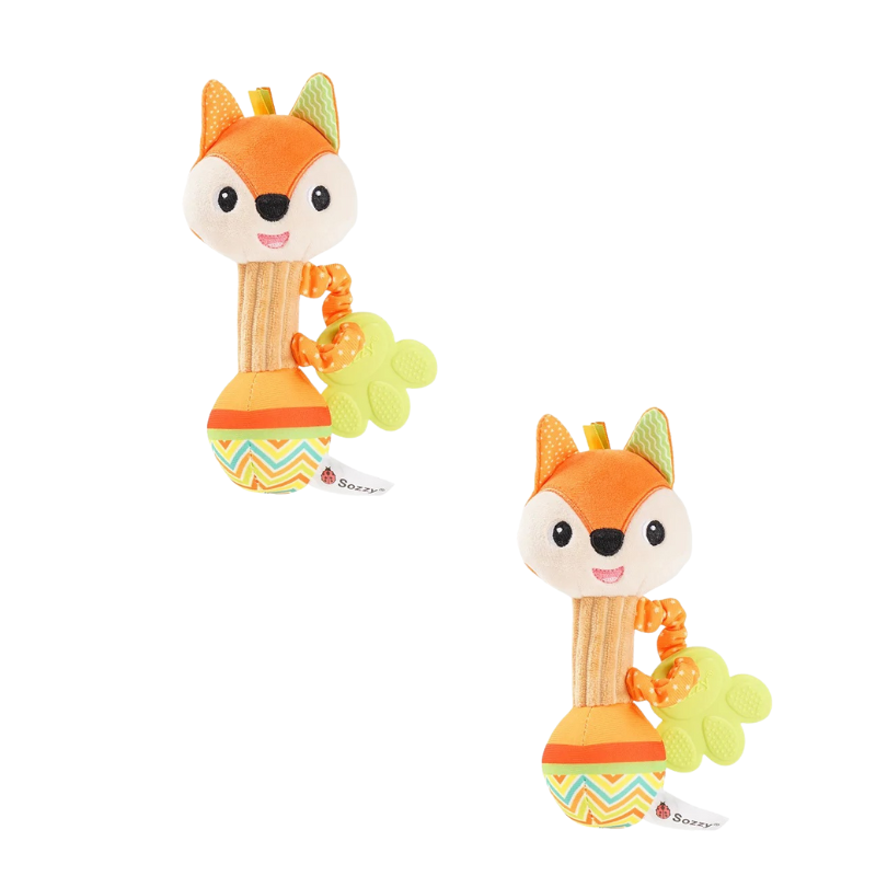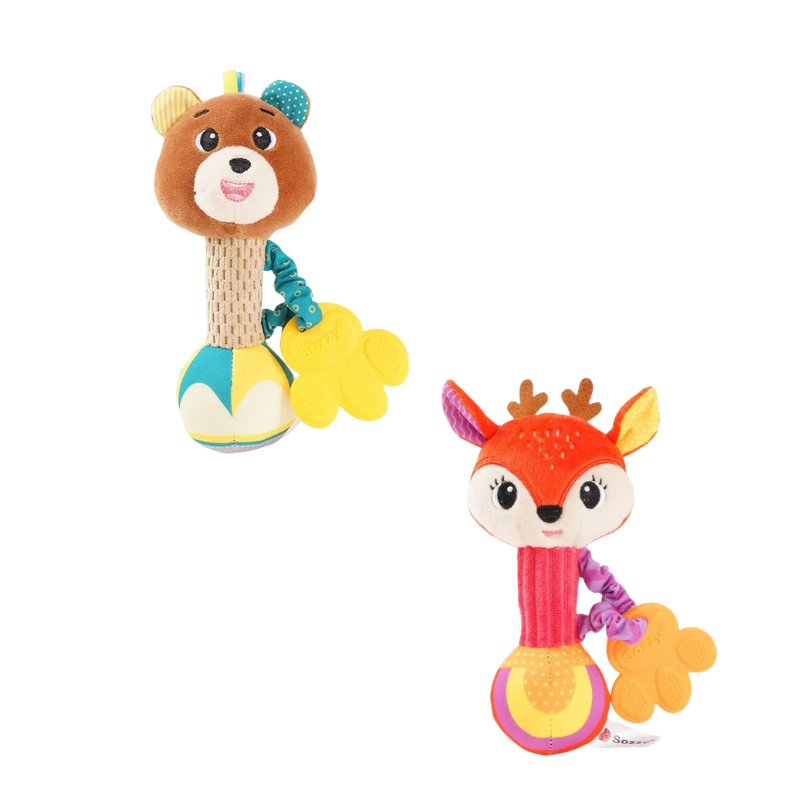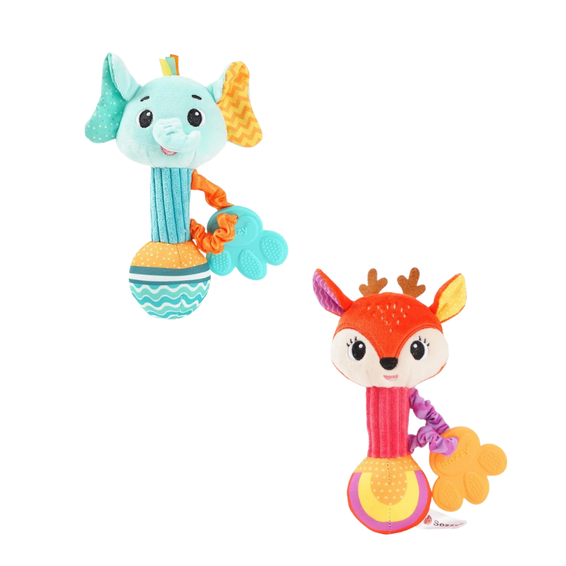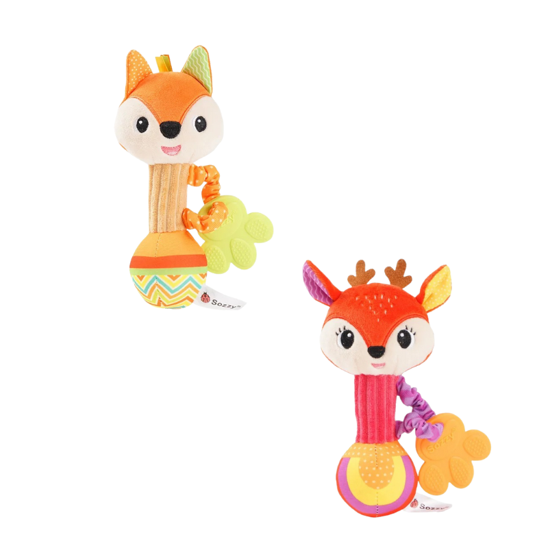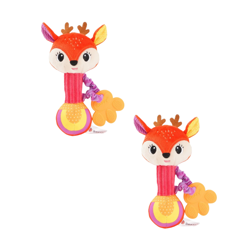 I purchased the deer version and my son absolutely loves it! He loves the squeaky sound and the crinkle effect in the ears. It’s lightweight enough for him to lift and shake, though I wish it came with a clip for strollers.