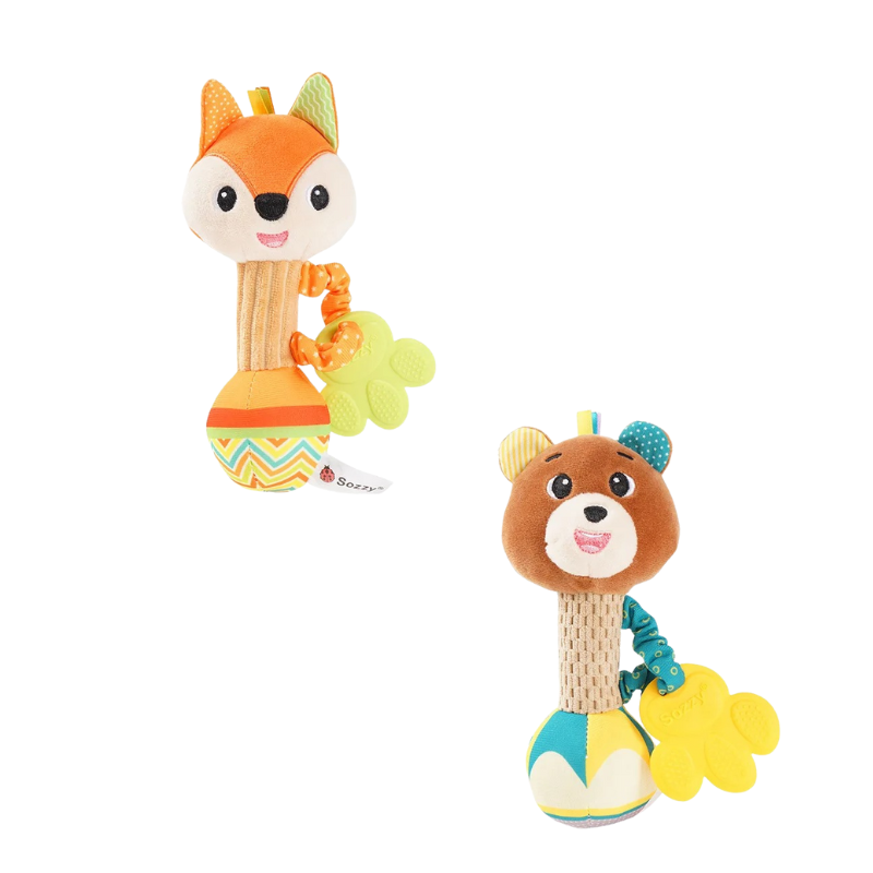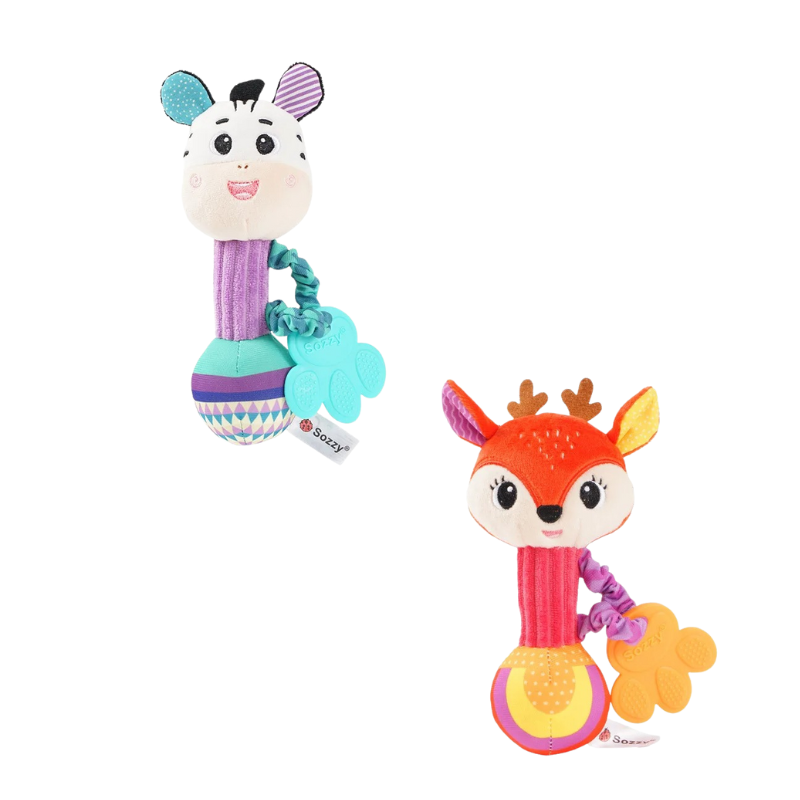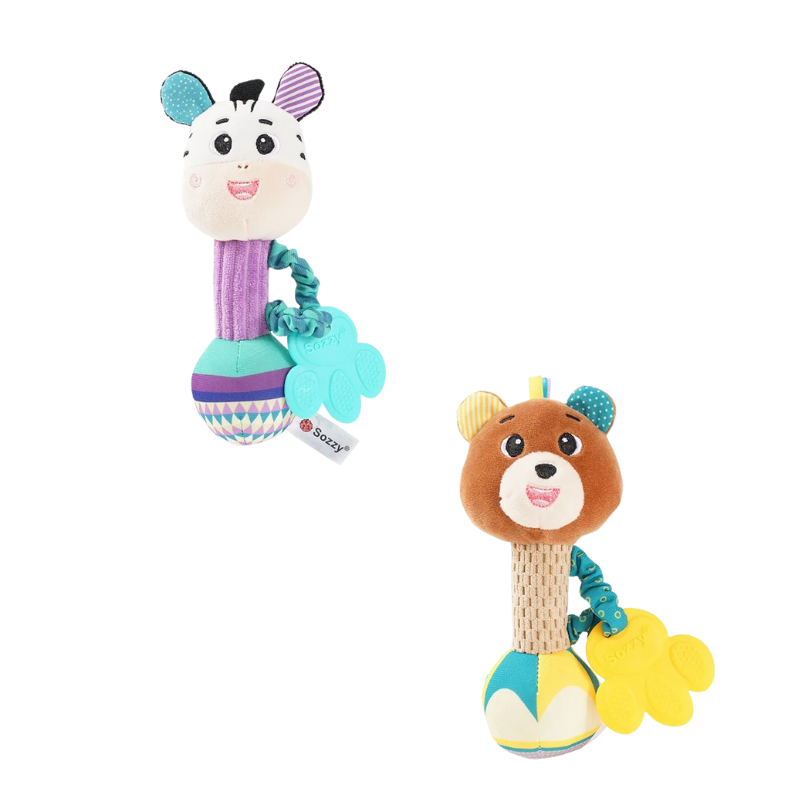 Delight your baby’s senses and nurture early development with CuddleChime, a soft and snuggly pair of animal-themed rattles that encourage grasping, shaking, and giggling. Perfect for playtime, naptime, and every cuddle in between.