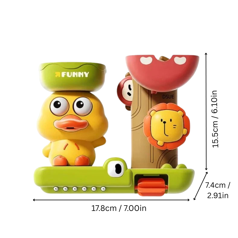 We’ve gone through several bath toys, and this is easily the best one we’ve had. The suction cups stay in place even on wet tiles, and the water features actually work as promised. My daughter loves filling the duck’s head and watching the water cascade through the croc spout and onto the spinning pieces.
