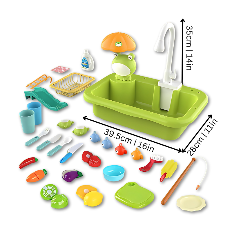 FishSink brings the joy of fishing indoors, making it fun and safe. Kids can pretend to cook, clean, and fish, all in one place. The automatic water circulation system keeps the water flowing without any waste. Just fill it up, turn on the tap, and let the fun begin. It’s all about engaging your child’s creativity while promoting water conservation.