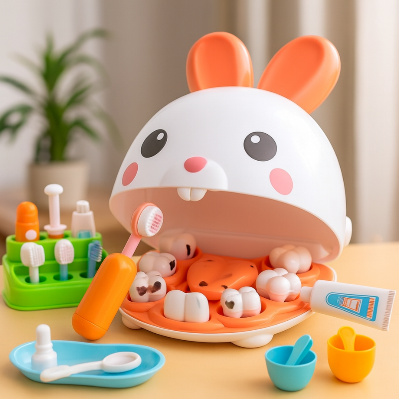 Kids learn best when they play! This adorable rabbit-themed dentist set turns pretend play into real discovery. Your child can role-play as a dentist, check their toys’ teeth, or even “fix” mom and dad’s smiles. It’s the perfect way to boost creativity and teach good habits at the same time.