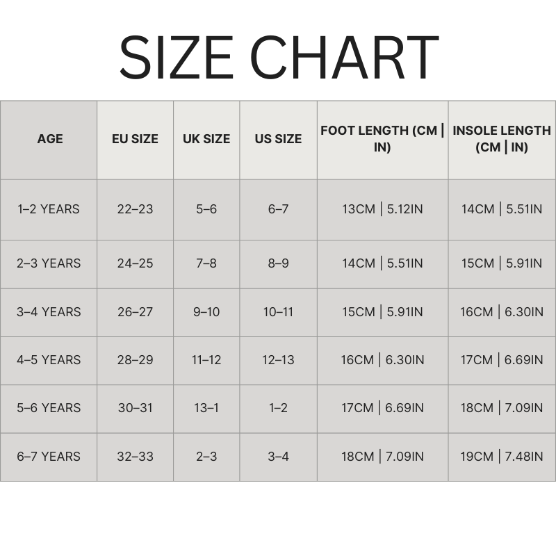- Available Sizes: 22–23, 24–25, 26–27, 28–29, 30–31, 32–33