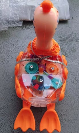 love that the gears are visible because it’s a sneaky little STEM moment. we talk about big gear vs small gear while it waddles around. batteries last a decent while on and off play.