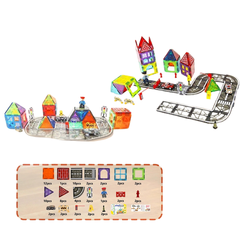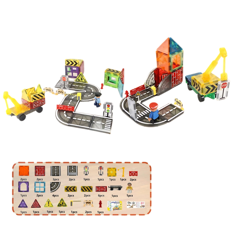 Turn playtime into an exciting adventure with MagniCity–a colorful construction kit that lets kids design their own bustling towns, connect streets, and build lively spaces where cars and imagination come together in endless fun.