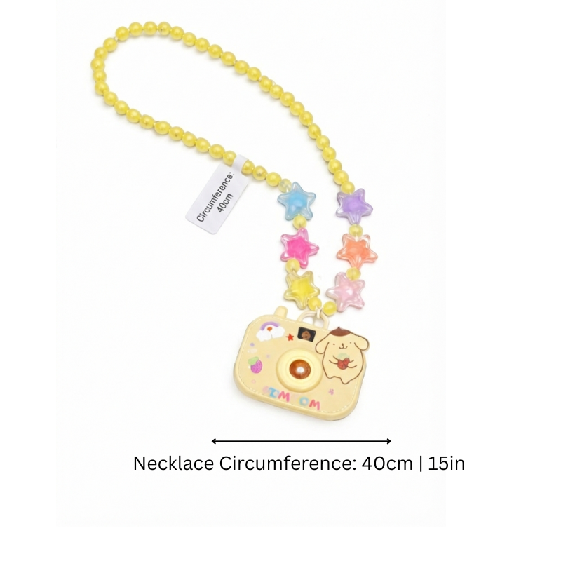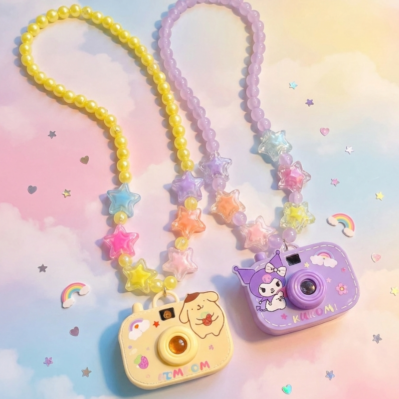 PixieCam combines a cute toy camera with a beaded necklace, making it both a playful accessory and a fun interactive toy. Designed with beloved Sanrio-style characters, it instantly attracts attention and becomes a favorite part of dress-up and pretend play. Kids enjoy wearing it around their neck, feeling proud to carry their own “camera” wherever they go. It blends fashion and play in a way that feels special and personal.