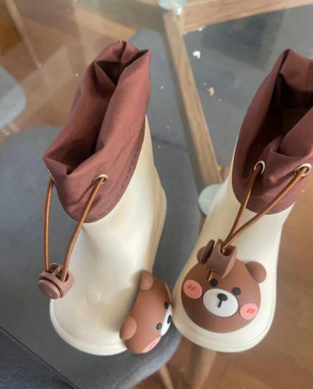 My twins have the bunny and frog versions, and they absolutely adore them. They’re roomy enough to wear thick socks underneath for colder days. No leaks or rubbing so far, even after hours of wear.