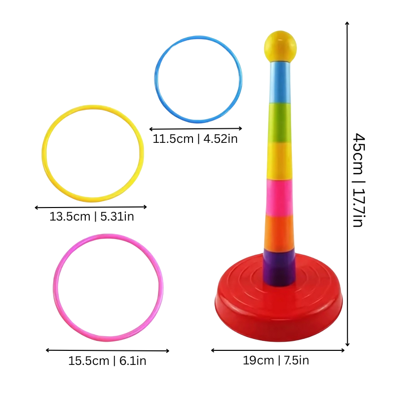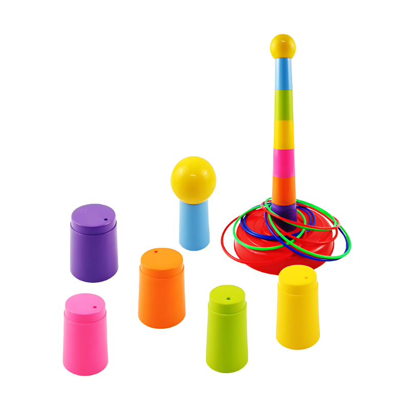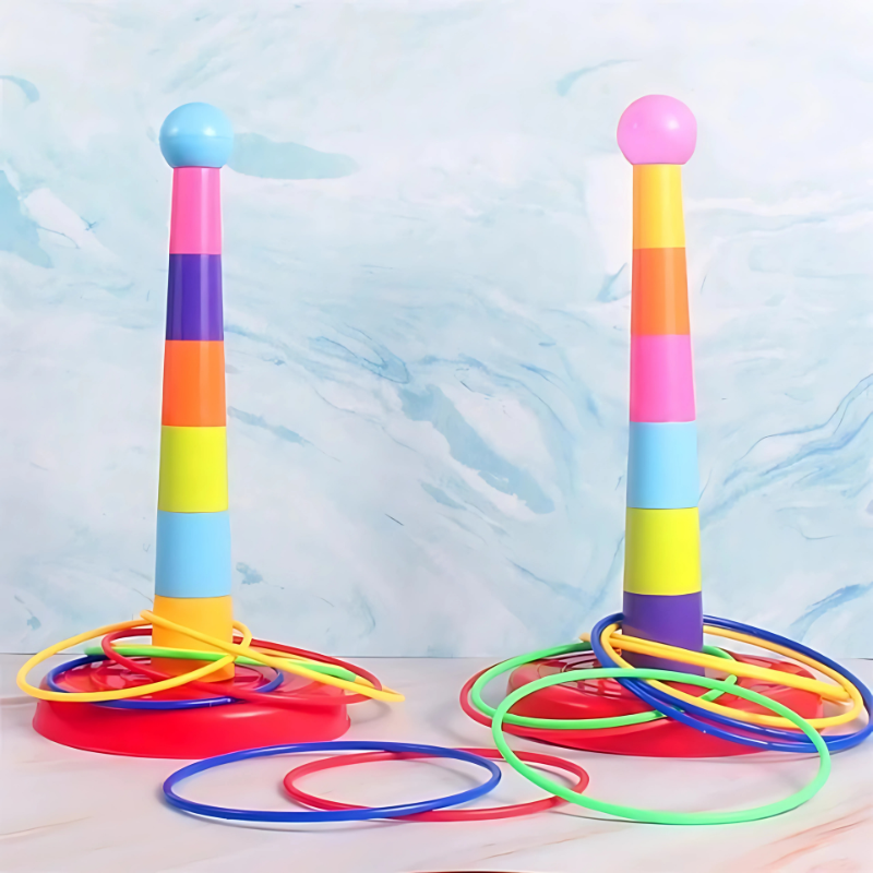 The rings are light, colorful, and just the right size for tiny hands. Kids can aim, toss, stack, and score in endless ways. Want a simple toss game? Easy. Looking for something more active? Mix it up with races or team rounds. It’s all about flexibility and fun.