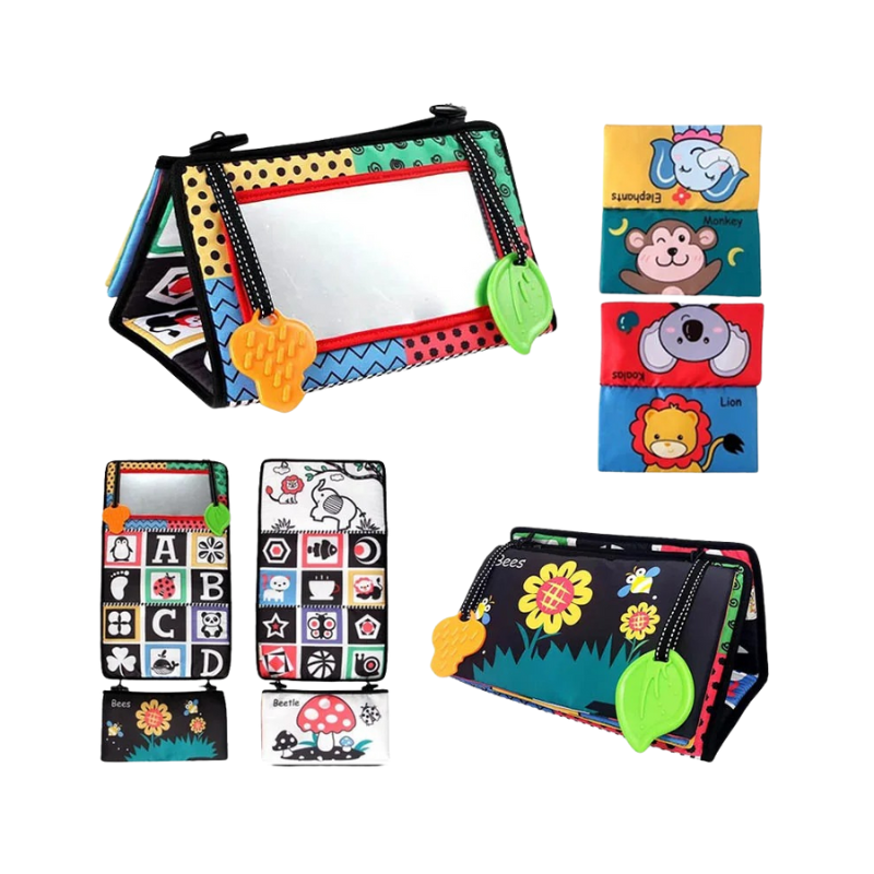 Transform your little one's tummy time into an enchanting journey of laughter, learning, and sensory exploration with SensoryFun - the interactive mirror and playmat designed to nurture your baby's visual, auditory, and tactile senses, fostering early brain development and motor skills in a bond-strengthening play.