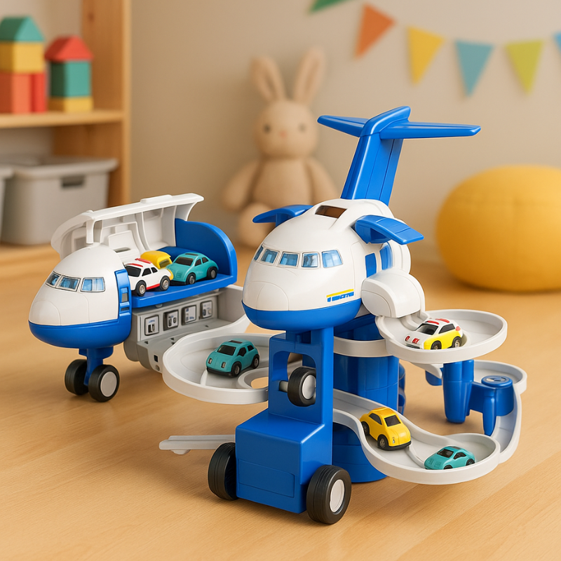This plane transforms into a racing track in seconds. Kids load the mini cars, launch them, and cheer through every twist. The smooth track thrills them again and again. Big joy comes from simple, hands-on play.