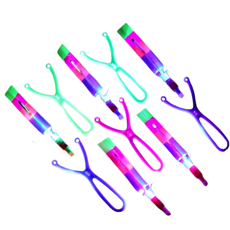 Send excitement soaring after sunset with SkySlinger—a glow-in-the-dark LED slingshot flyer that launches high into the air with a burst of light and spins back down like a magical rocket, turning backyards, parks, and parties into thrilling night-time adventures.