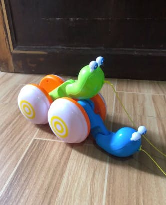 my baby keeps smiling whenever he pulls the snail. the design is so friendly and cute.