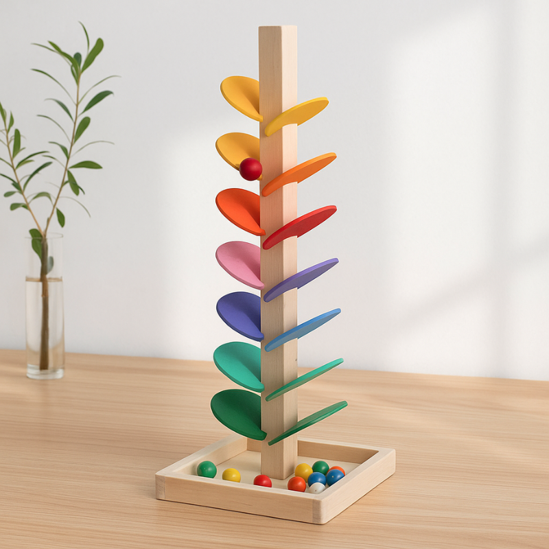 Let your child discover calming concentration and sensory delight as colorful marbles dance down the rainbow leaves of Tinklo, the Montessori sound tree that nurtures focus, fine motor skills, and imaginative play—all through the simple, mesmerizing power of movement and sound.