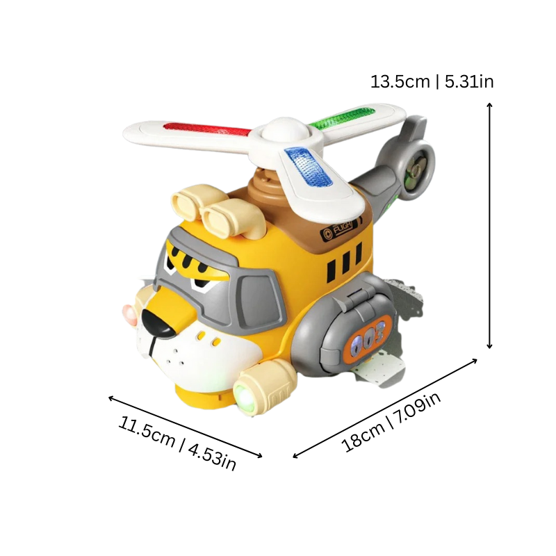 WhirlWing’s adorable tiger-inspired cartoon plane design instantly draws kids in with its bold colors and friendly character. The rotating propeller, glowing LED lights, and playful aircraft sounds work together to create a lively, immersive experience that feels exciting from the very first moment. As it moves, spins, and changes direction, children stay visually engaged and eager to follow along.